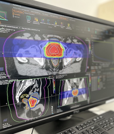 呼吸同期システムを備え、呼吸の動きによる分布の変化も治療計画でシミュレーションが可能です。前立腺がん治療で蓄積したノウハウを他の疾患にも余すところなく活用します。