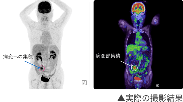 ブドウ糖にごくわずかに放射線を出す成分を加えた検査薬を使用し、その検査薬が体のどこに集まっているかを画像化することで、がんの有無だけでなくその位置や広がりを高い精度で診断できます。